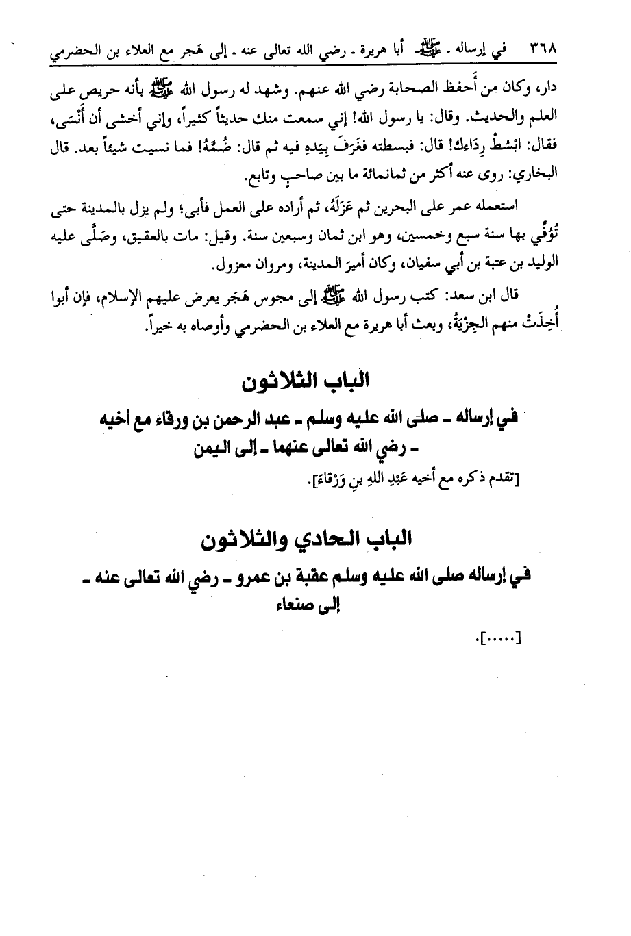وبعث أبا هريرة مع العلاء بن الحضرمي وأوصاه به خيرا.