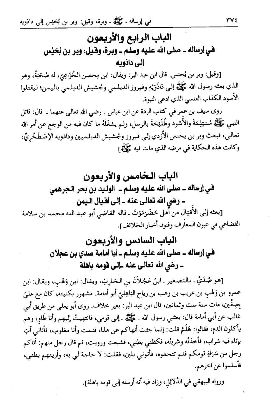 الباب الخامس والأربعون في إرساله- صلّى الله عليه وسلّم- الوليد بن بحر الجرهمي- رضي الله تعالى عنه- إلى أقيال اليمن