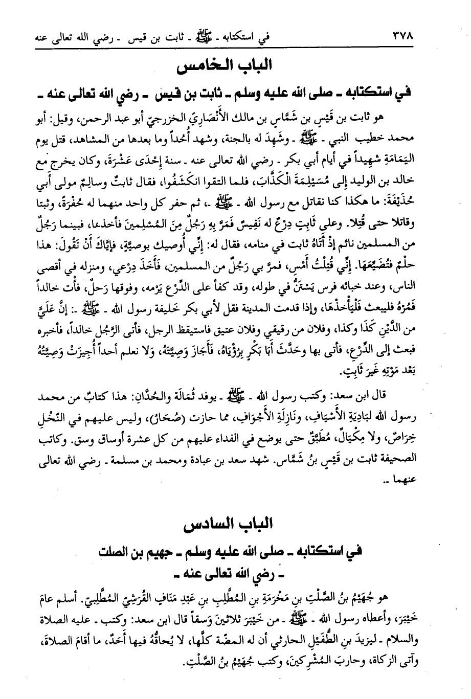 الباب السادس في استكتابه- صلّى الله عليه وسلّم- جهيم بن الصلت- رضي الله تعالى عنه-