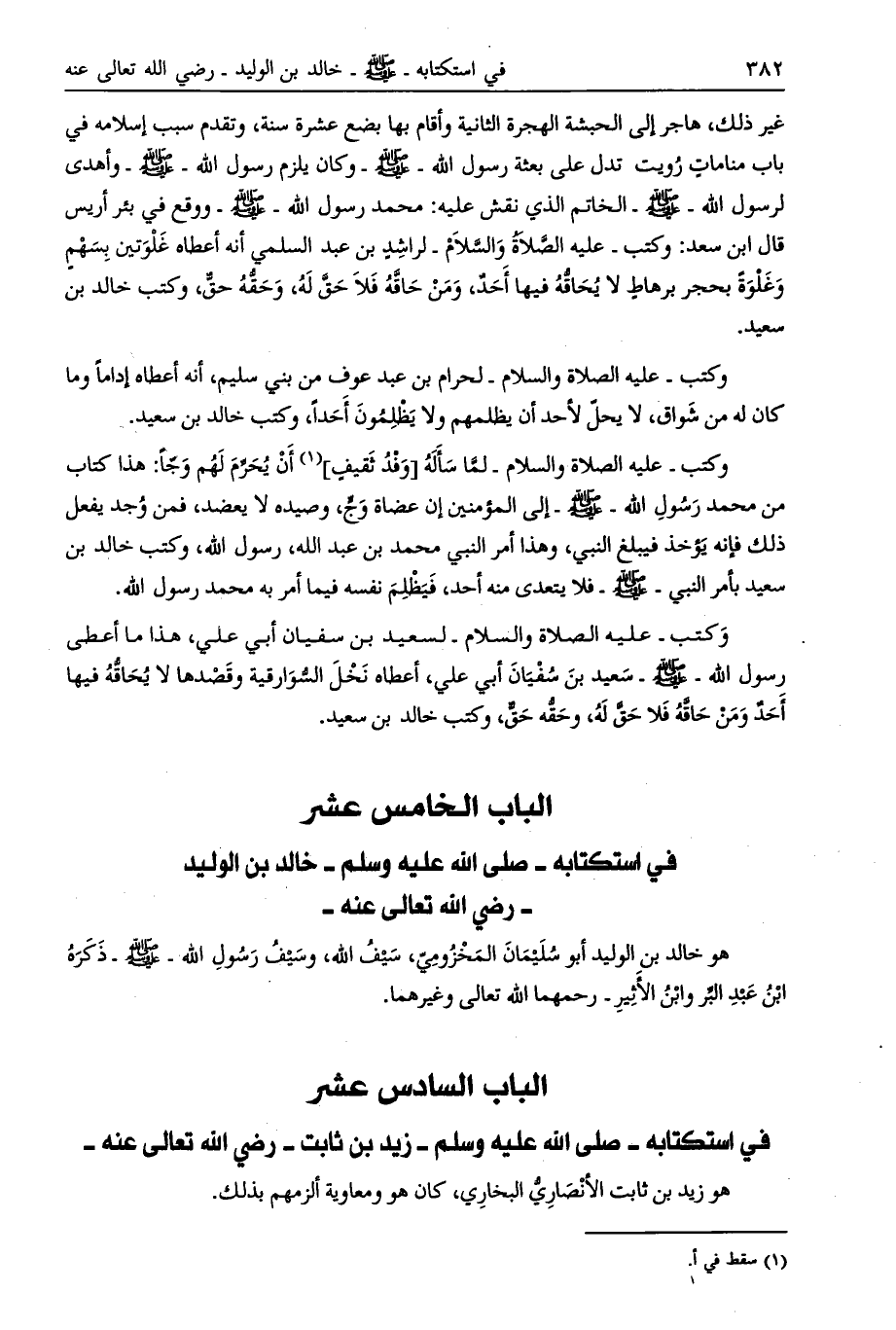 الباب الخامس عشر في استكتابه- صلّى الله عليه وسلم- خالد بن الوليد- رضي الله تعالى عنه-