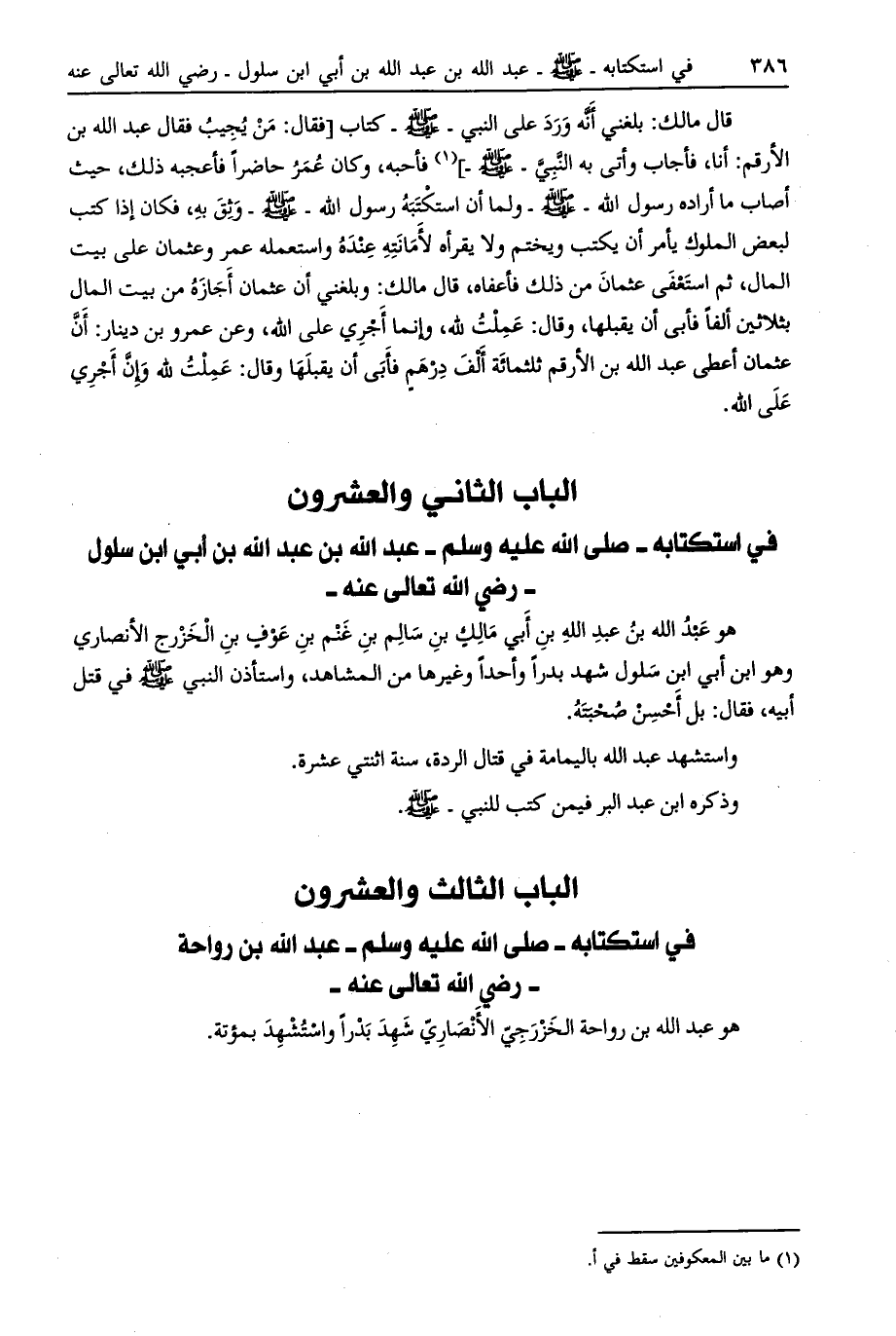 الباب الثاني والعشرون في استكتابه- صلّى الله عليه وسلم- عبد الله بن عبد الله بن أبي ابن سلول- رضي الله تعالى عنه-
