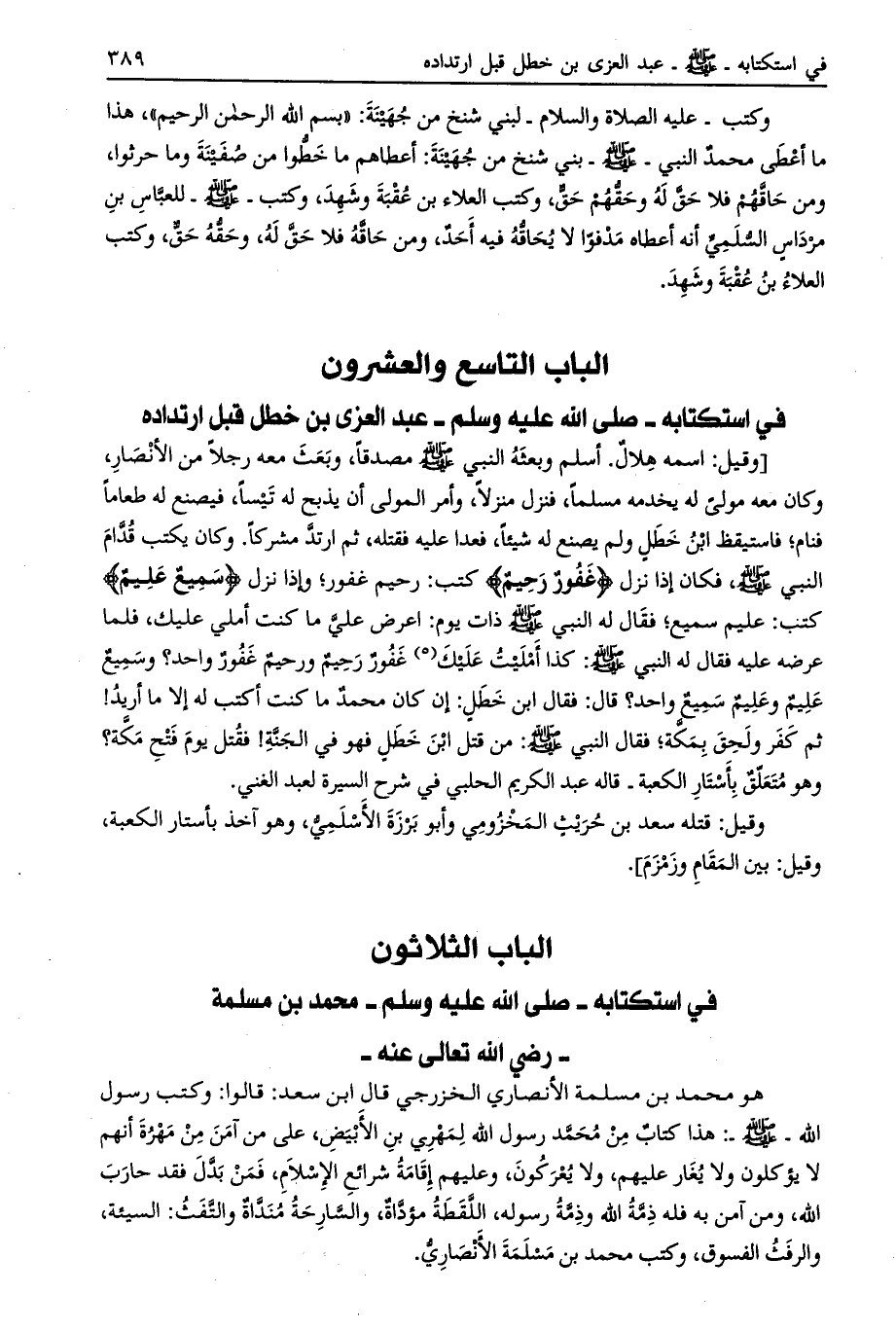 الباب التاسع والعشرون في استكتابه- صلّى الله عليه وسلم- عبد العزى بن خطل قبل ارتداده