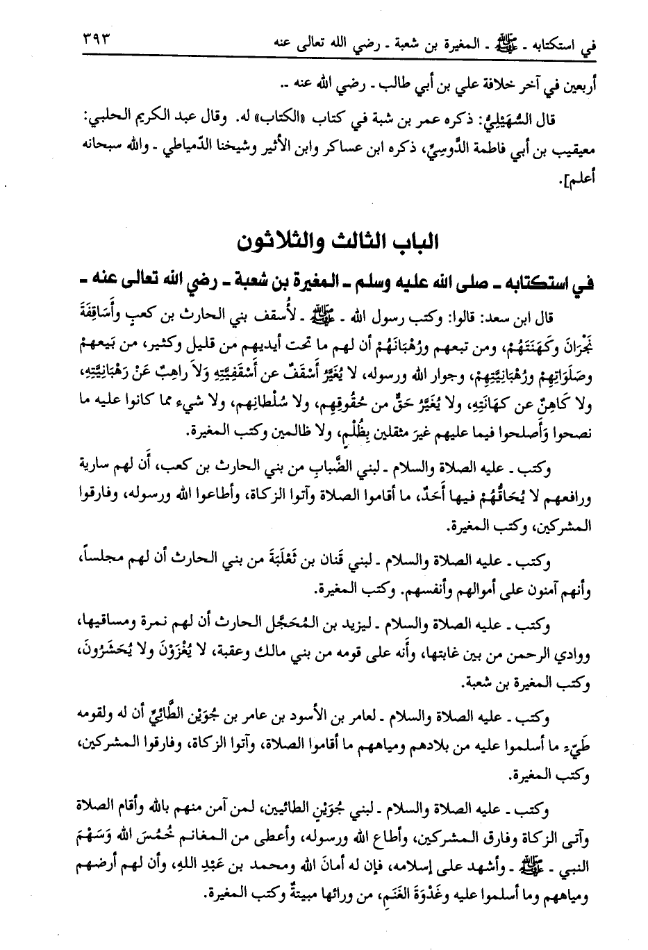 الباب الثالث والثلاثون في استكتابه- صلّى الله عليه وسلّم- المغيرة بن شعبة- رضي الله تعالى عنه-