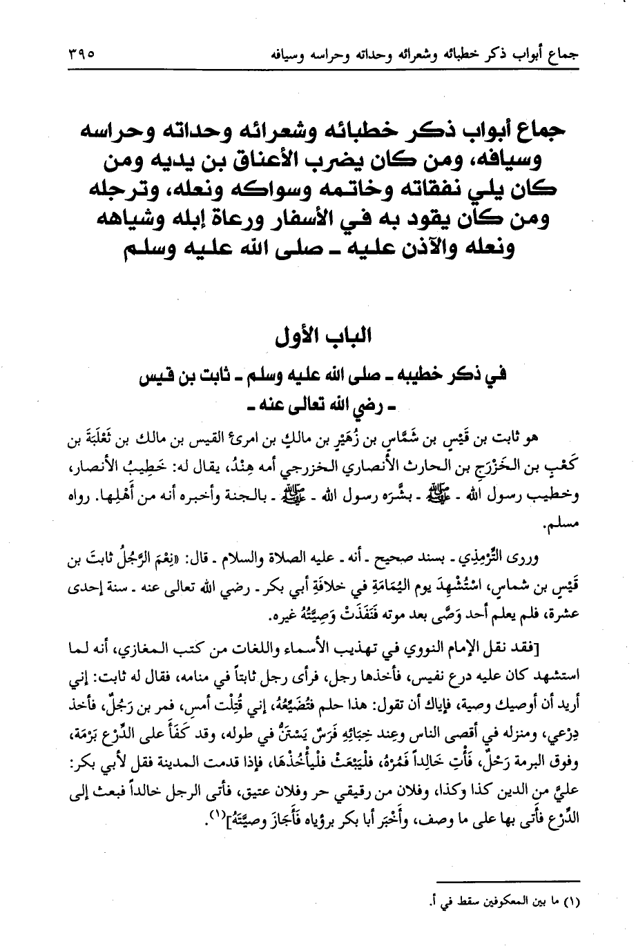 الباب الأول في ذكر خطيبه- صلّى الله عليه وسلم- ثابت بن قيس- رضي الله تعالى عنه-