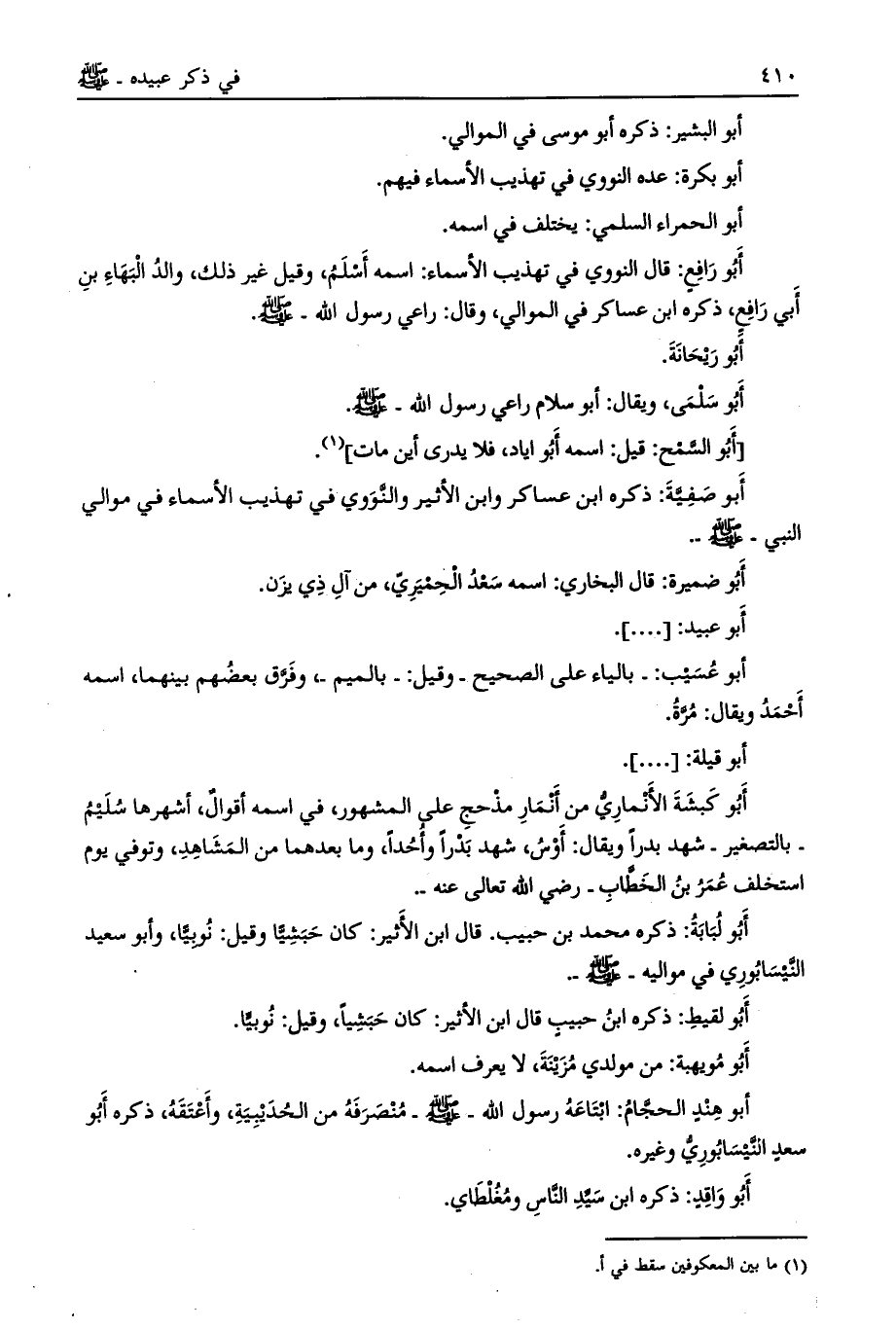 أبو صفيّة: ذكره ابن عساكر وابن الأثير والنّووي في تهذيب الأسماء في موالي النبي- صلى الله عليه وسلم-.
