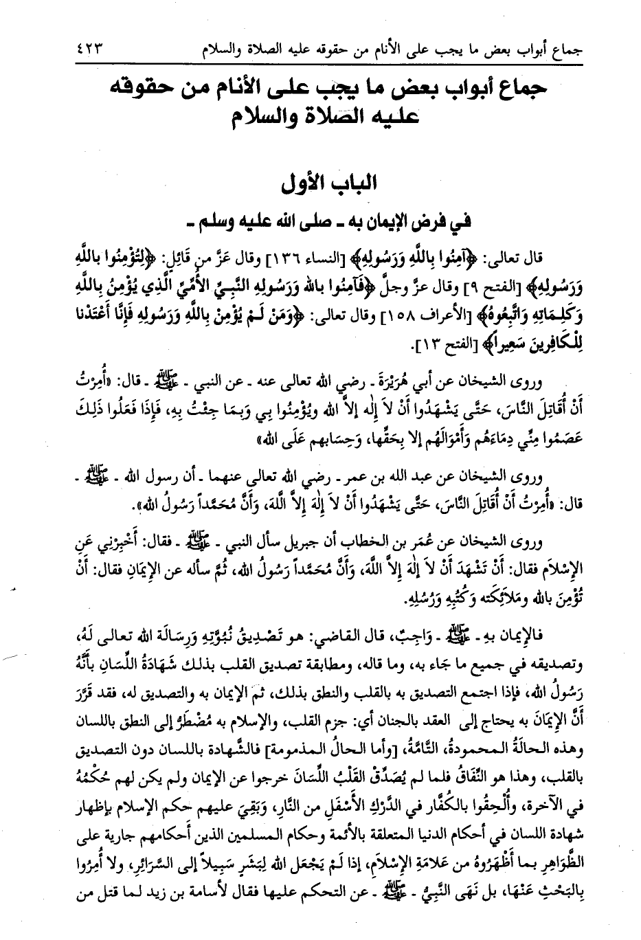 الباب الأول في فرض الإيمان به- صلى الله عليه وسلم-