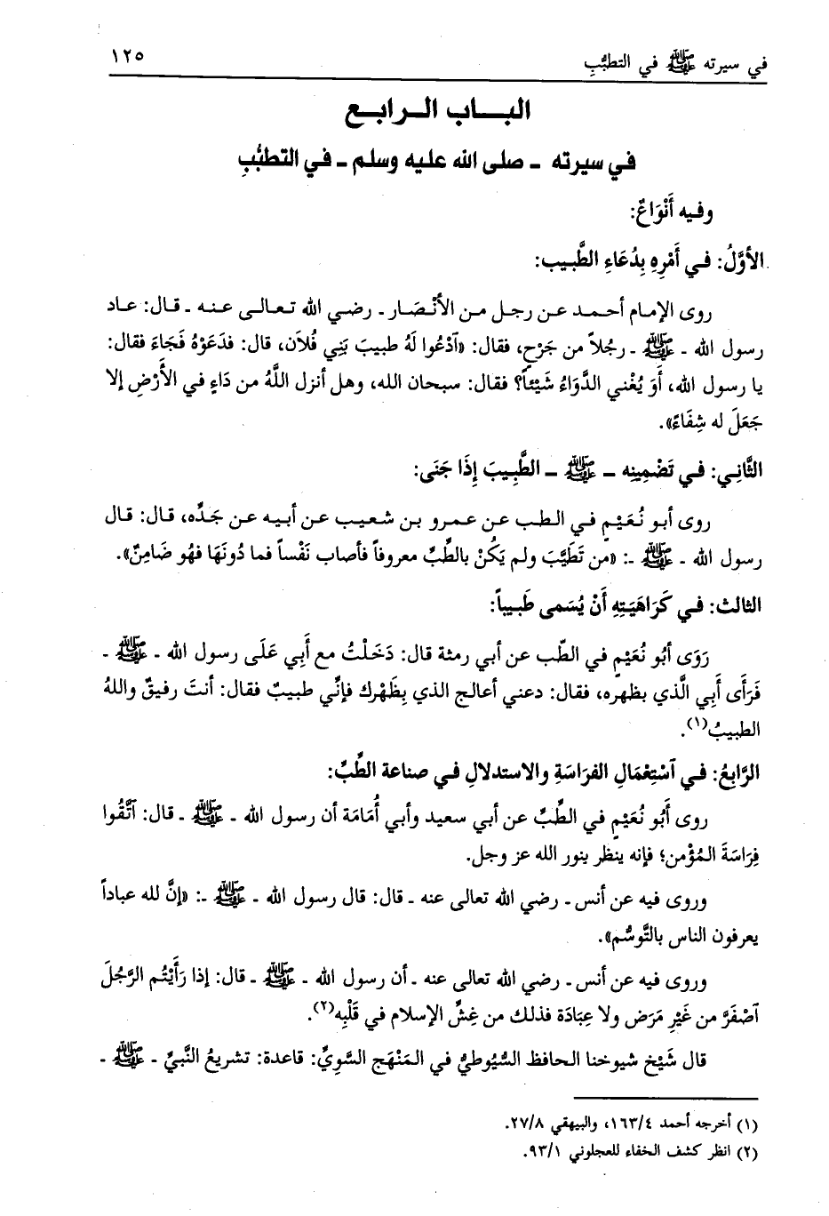الباب الرابع في سيرته- صلّى الله عليه وسلم- في التطبّب