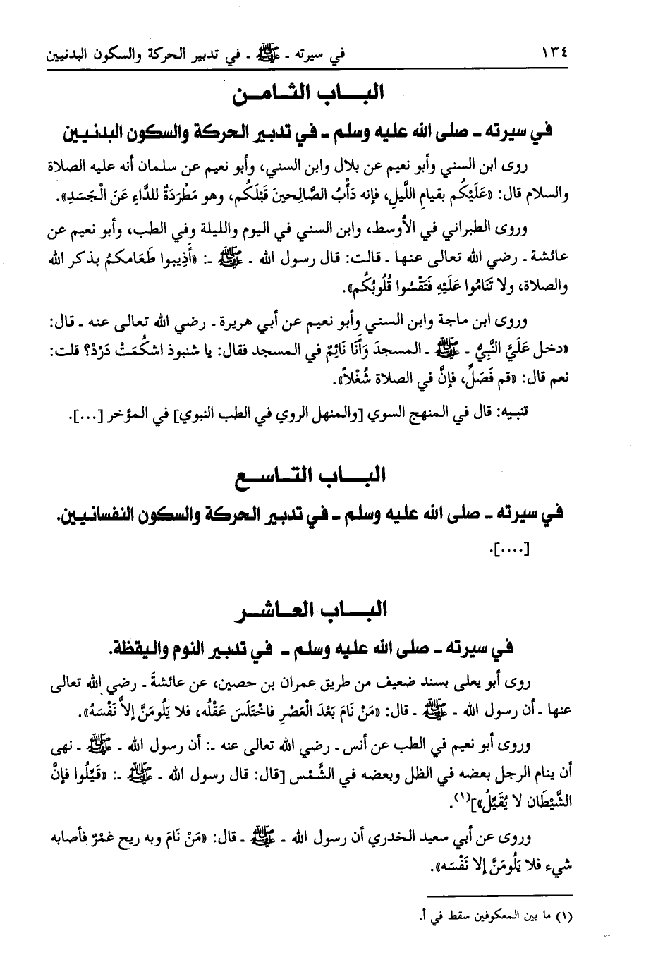 الباب العاشر في سيرته- صلّى الله عليه وسلم- في تدبير النوم واليقظة.