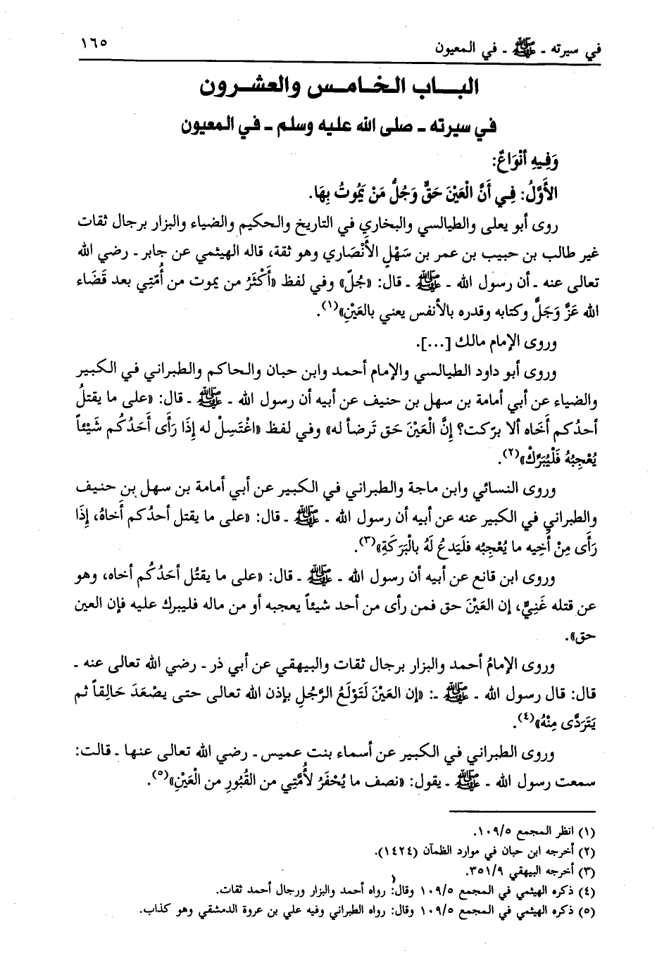 روى أبو يعلى والطيالسي والبخاري في التاريخ والحكيم والضياء والبزار برجال ثقات غير طالب بن حبيب بن عمر بن سهل الأنصاري وهو ثقة، قاله الهيثمي عن جابر- رضي الله تعالى عنه- أن رسول الله- صلى الله عليه وسلم- قال: «جلّ» وفي لفظ «أكثر من يموت من أمتي بعد قضاء الله عز وجل وكتابه وقدره بالأنفس يعني بالعين»