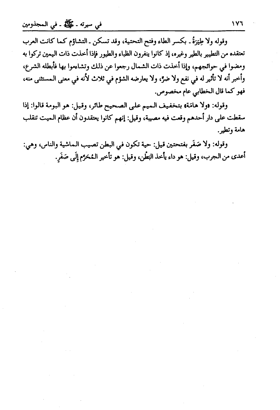 وقوله: ولا صفر بفتحتين قيل: حية تكون في البطن تصيب الماشية والناس، وهي:
