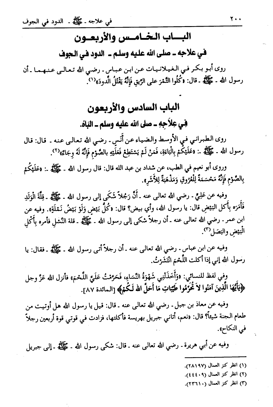 الباب الخامس والأربعون في علاجه- صلّى الله عليه وسلم- الدود في الجوف