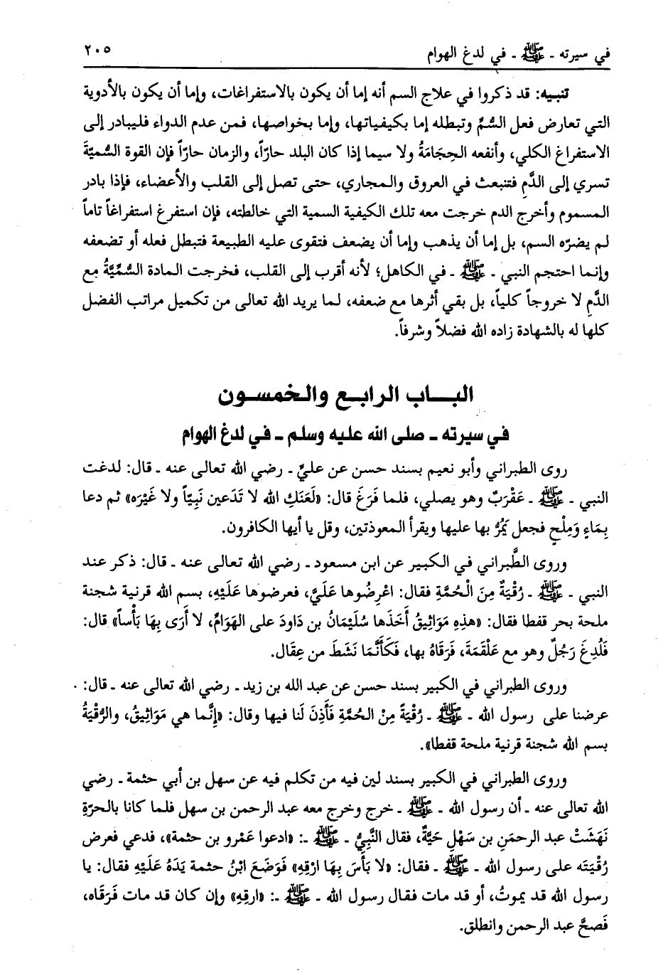الباب الرابع والخمسون في سيرته- صلّى الله عليه وسلم- في لدغ الهوام