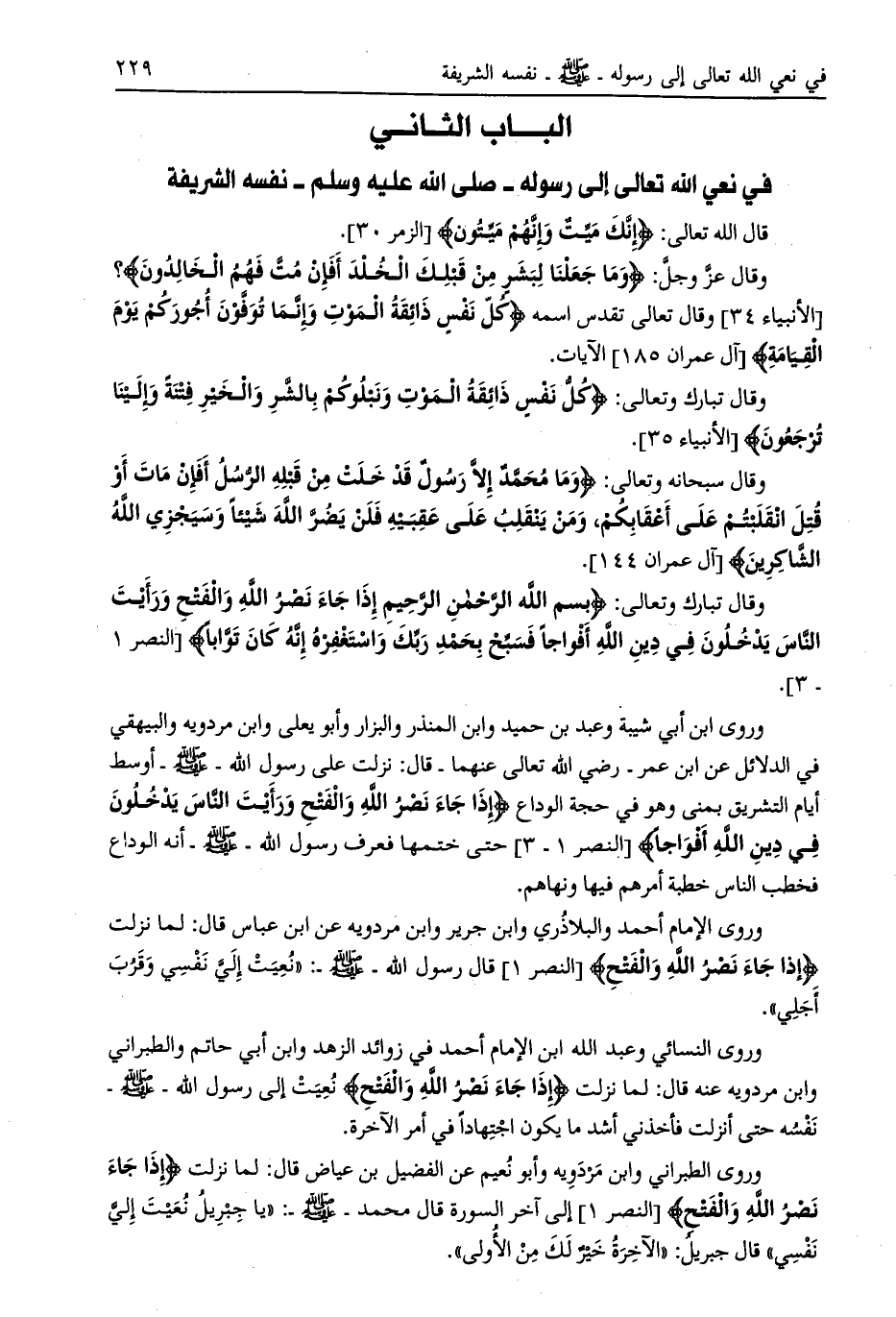 الباب الثاني في نعى الله تعالى إلى رسوله- صلى الله عليه وسلم- نفسه الشريفة