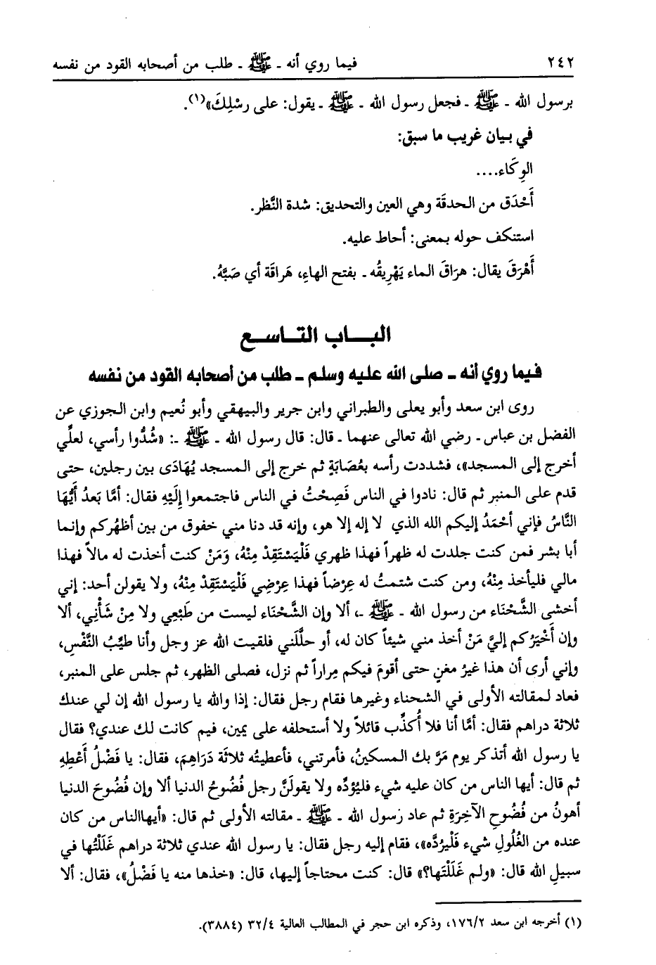 الباب التاسع فيما روي أنه- صلى الله عليه وسلم- طلب من أصحابه القود من نفسه