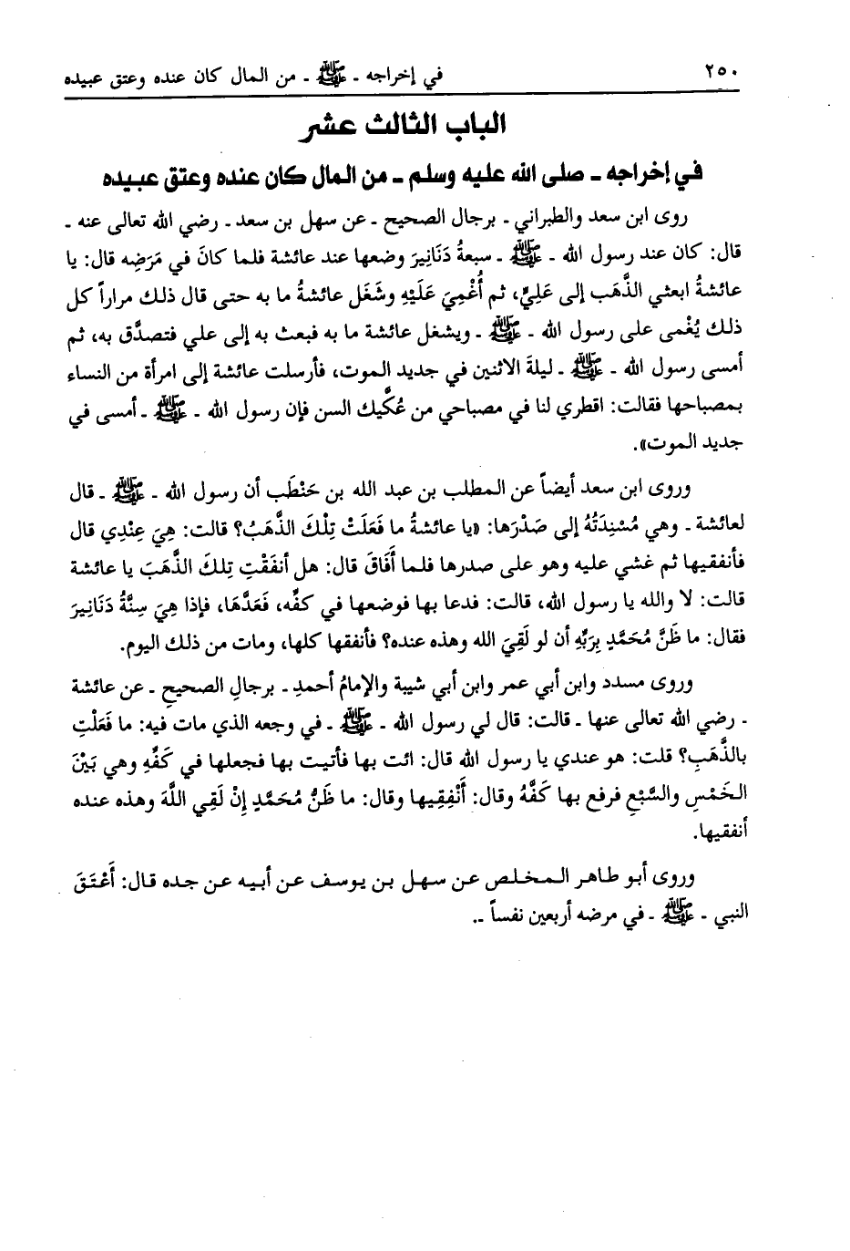 الباب الثالث عشر في إخراجه- صلى الله عليه وسلم- من المال كان عنده وعتق عبيده