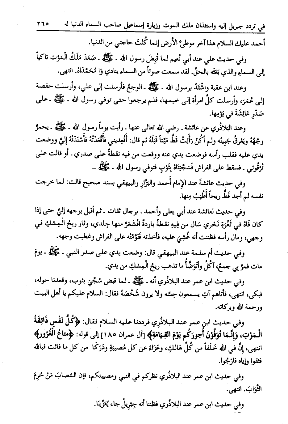 وفي حديث علي عند أبي نعيم لما قبض رسول الله- صلى الله عليه وسلم- صعد ملك الموت باكيا إلى السماء والذي بعثه بالحق. لقد سمعت صوتاً من السماء ينادي وا محمّداه.