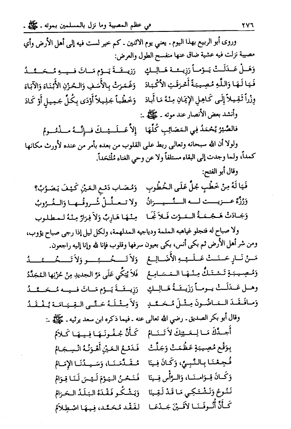وقال أبو بكر الصديق- رضي الله تعالى عنه- فيما ذكره ابن سعد يرثيه- صلى الله عليه وسلم-: