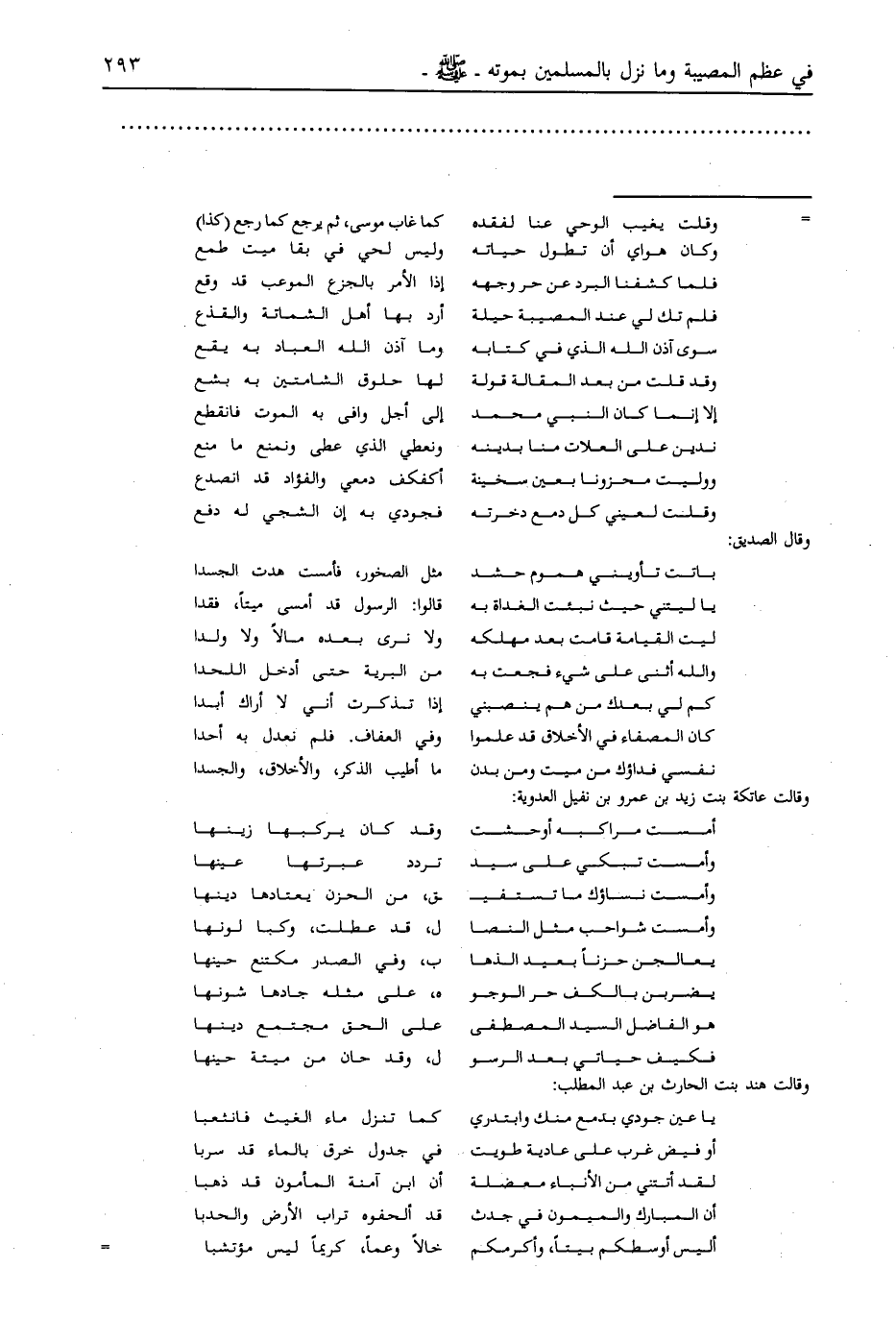 وقالت عاتكة بنت زيد بن عمرو بن نفيل العدوية: