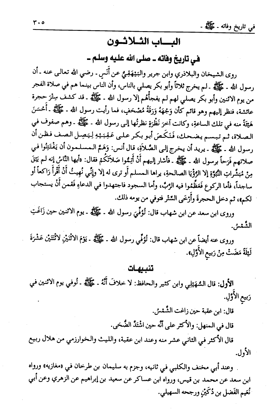 الباب الثلاثون في تاريخ وفاته- صلّى الله عليه وسلم-