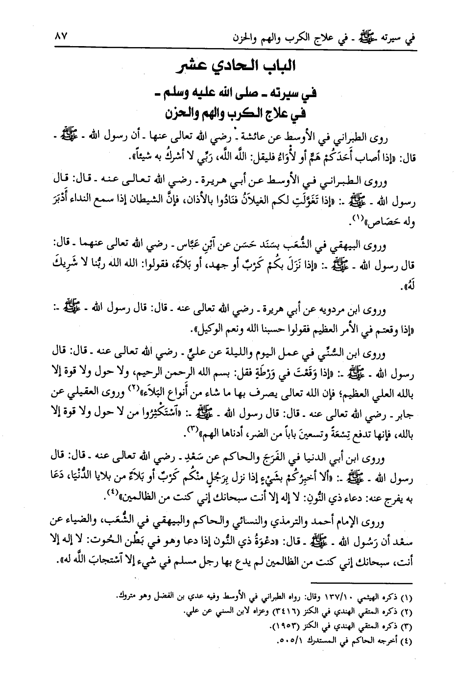 الباب الحادي عشر في سيرته- صلّى الله عليه وسلم- في علاج الكرب والهم والحزن
