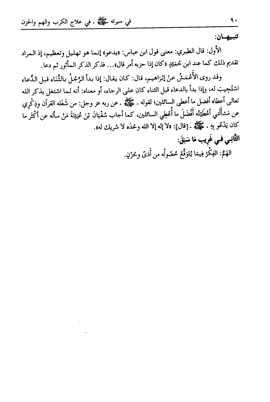 الأول: قال الطبري: معنى قول ابن عباس: «يدعو» إنما هو تهليل وتعظيم، إذ المراد تقديم ذلك كما عند ابن حميد «كان إذا حزبه أمرٌ قال» ... فذكر الذكر المأثور ثم دعا.