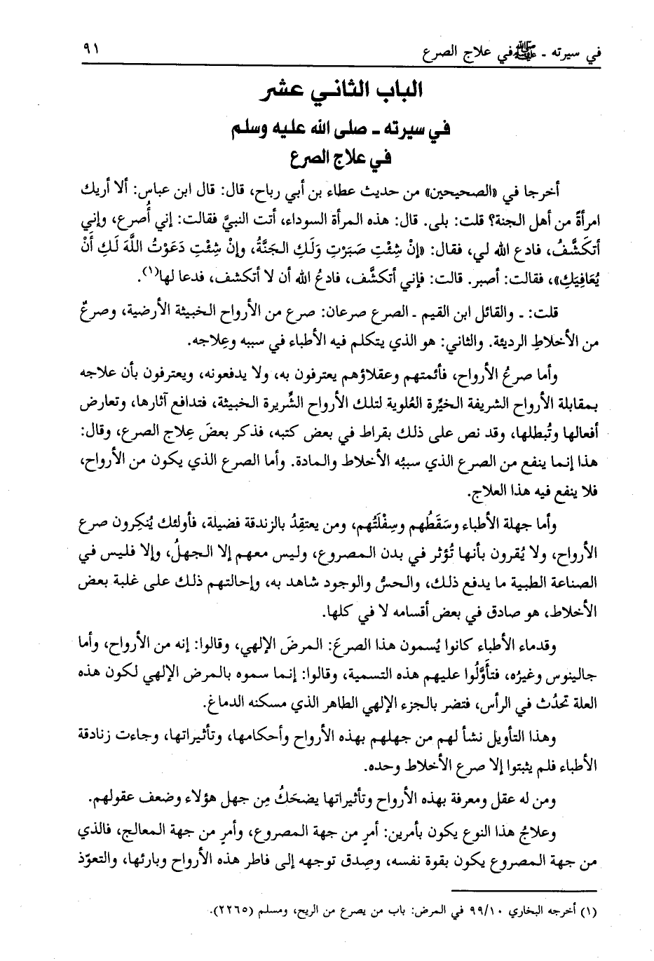الباب الثاني عشر في سيرته- صلّى الله عليه وسلم في علاج الصرع