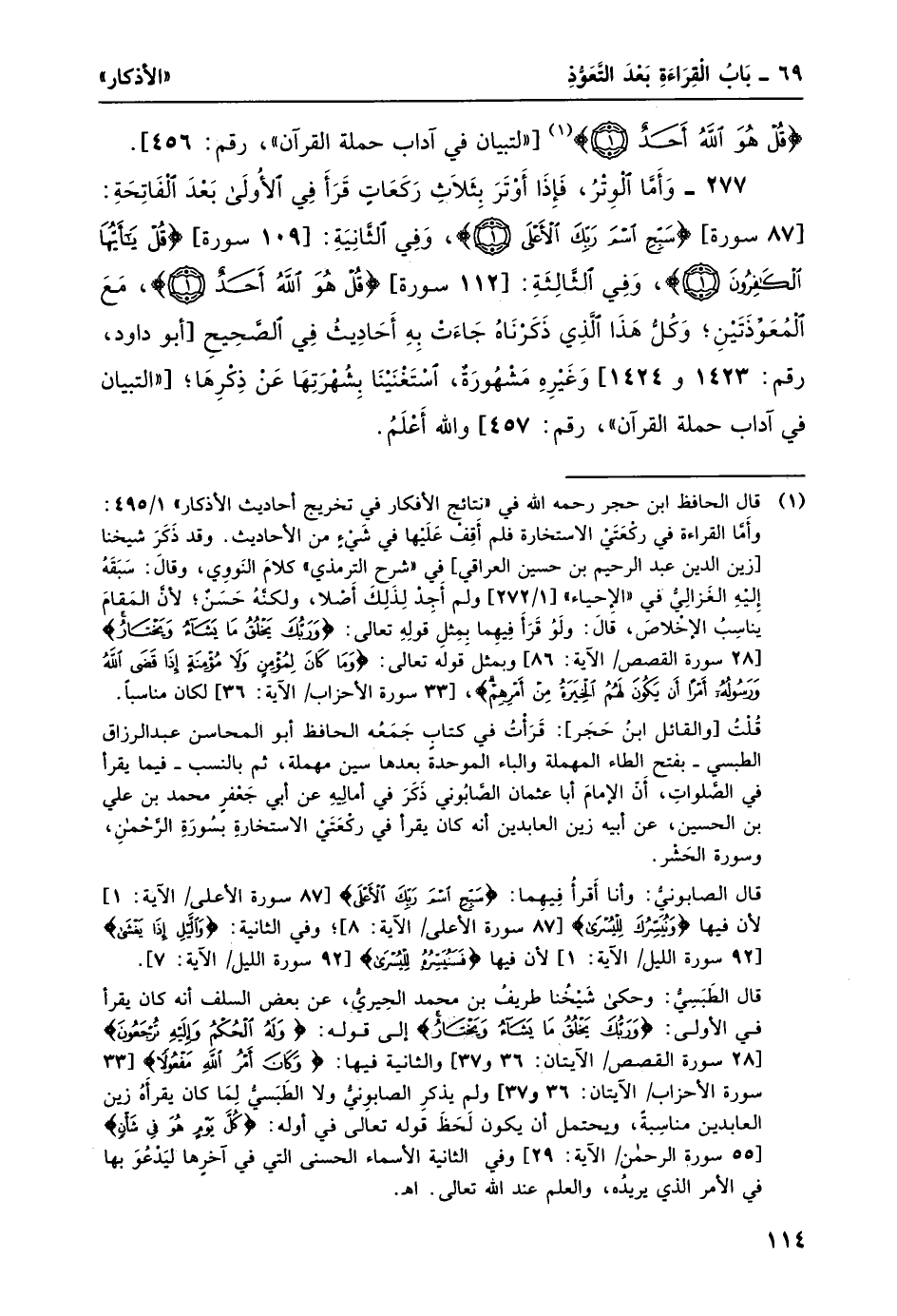 {قُلْ هُوَ اللَّهُ أَحَدٌ} 1 ["التبيان في آداب حملة القرآن"، رقم: 456] .