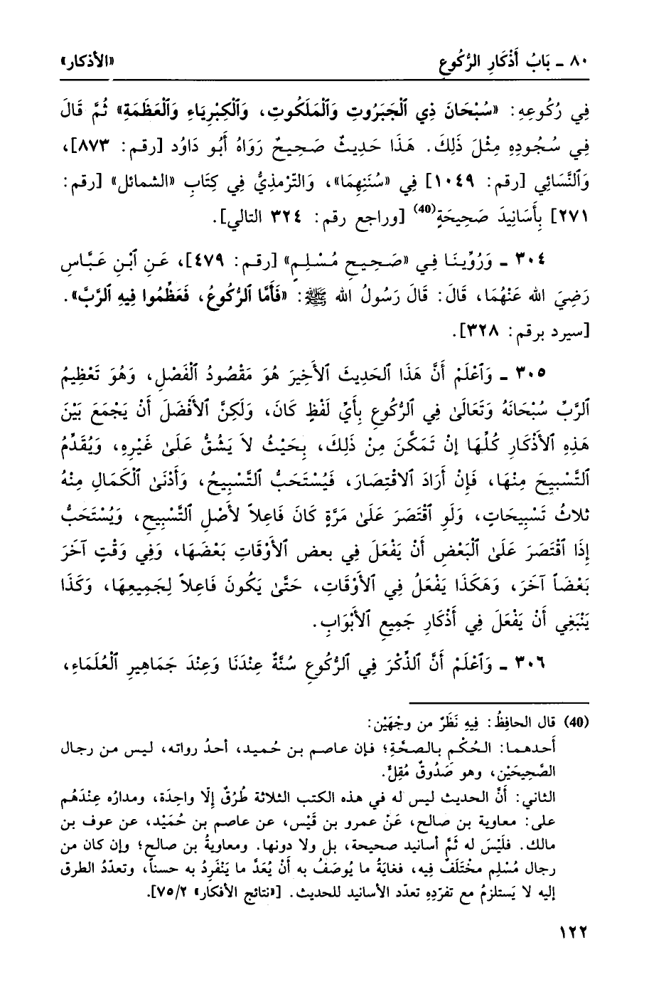 306- واعلم أن الذكرَ في الركوع سنّةٌ عندنا وعند جماهير العلماء،