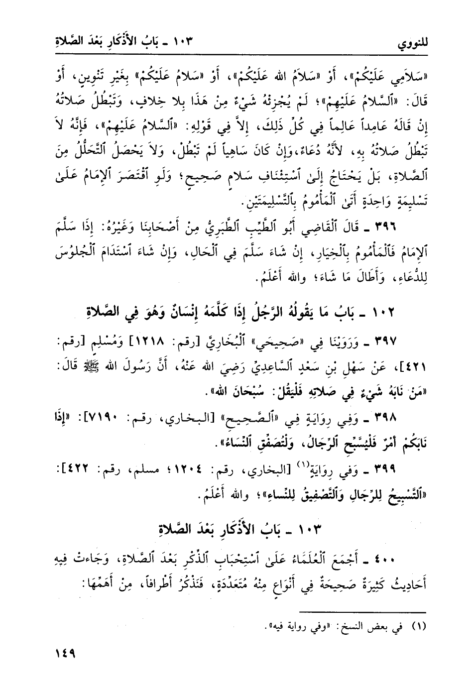 398- وفي روايةٍ في "الصحيح" [البخاري، رقم: 7190] : "إِذَا نَابَكُمْ أمْرٌ فليُسبح الرِّجالُ، ولْتُصَفِّقِ النِّساءُ".