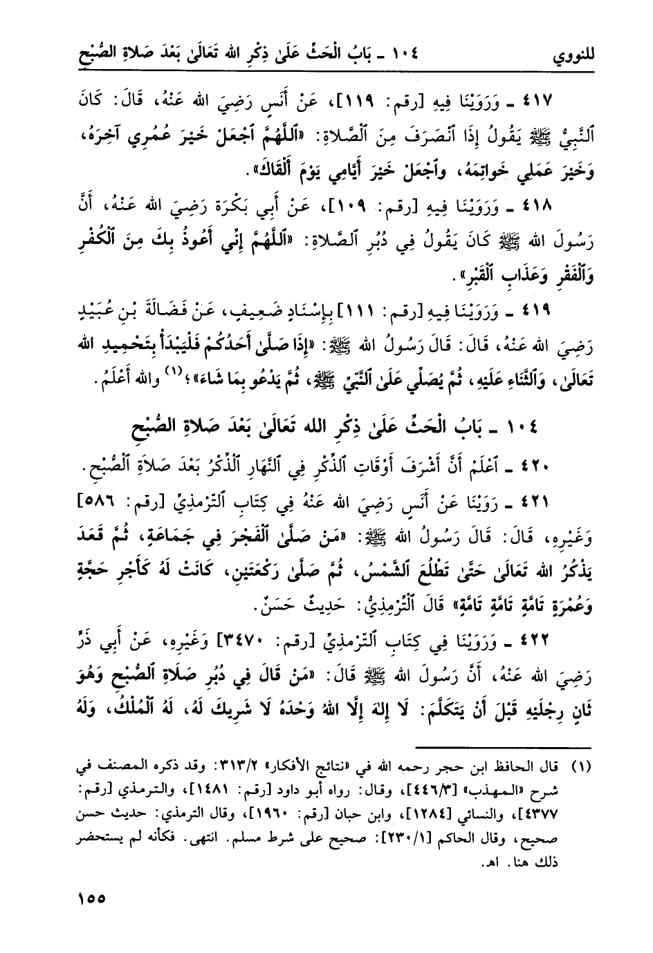 420- اعلم أن أشرفَ أوقات الذكر في النهار الذكرُ بعد صلاة الصبح.