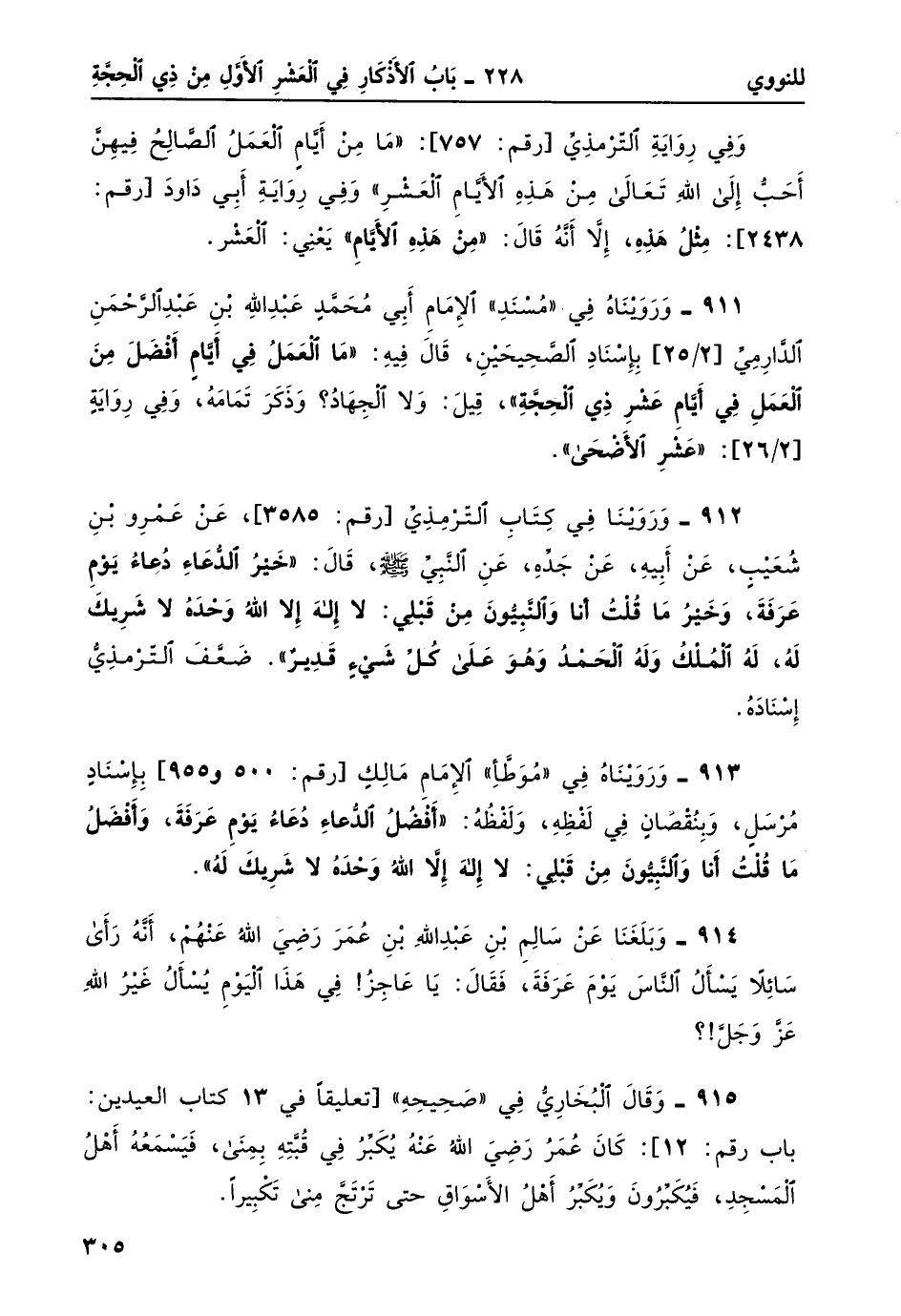 911- ورويناه في "مسند" الإِمام أبي محمد عبد الله بن عبد الرحمن الدارمي [2/ 25] بإسناد الصحيحين، قال فيه: "ما العَمَلُ فِي أيَّامٍ أفْضَلَ مِنَ العَمَلِ في أيام عَشْرِ ذِي الحِجَّةِ"، قيل: ولا الجهاد؟ وذكر تمامه، وفي رواية [2/ 26] : "عَشْرِ الأضْحَى".
