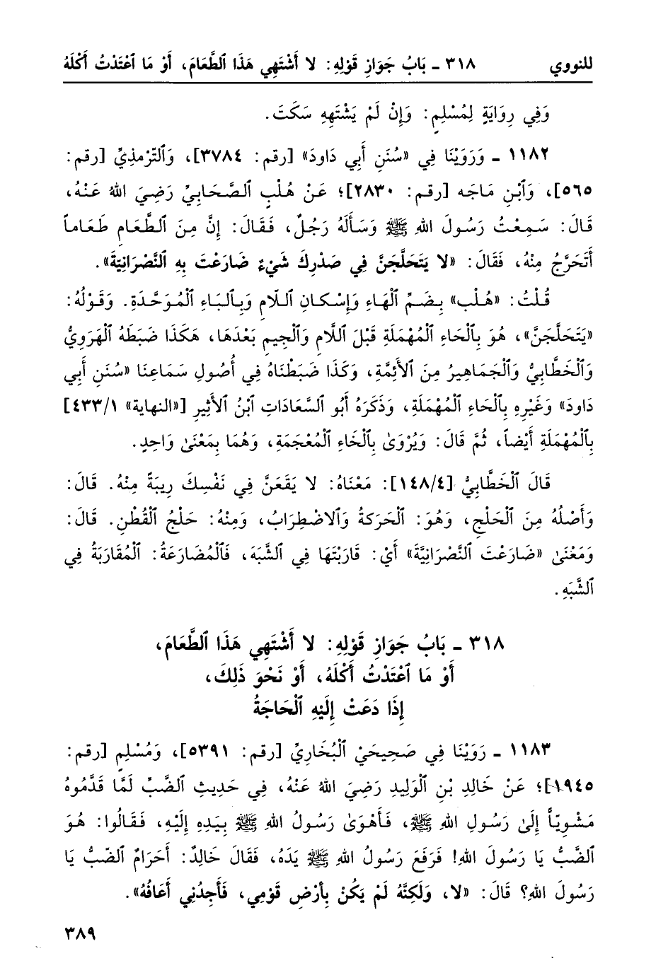 1182- وَرَوَيْنَا في "سنن أبي داود" [رقم: 3784] ، والترمذي [رقم 565] ، وابن ماجه [رقم: 2830] ؛ عن هُلْبٍ الصحابي رضي الله عنه، قال: سمعت رسول الله صلى الله عليه وسلم وسأله رجل، فقال: إن من الطعام طعاماً أتحرّجُ منه، فقال: "لا يتحلَّجَنَّ في صَدْرِكَ شَيْءٌ ضَارَعْتَ بِهِ النَّصْرانِيَّةَ".