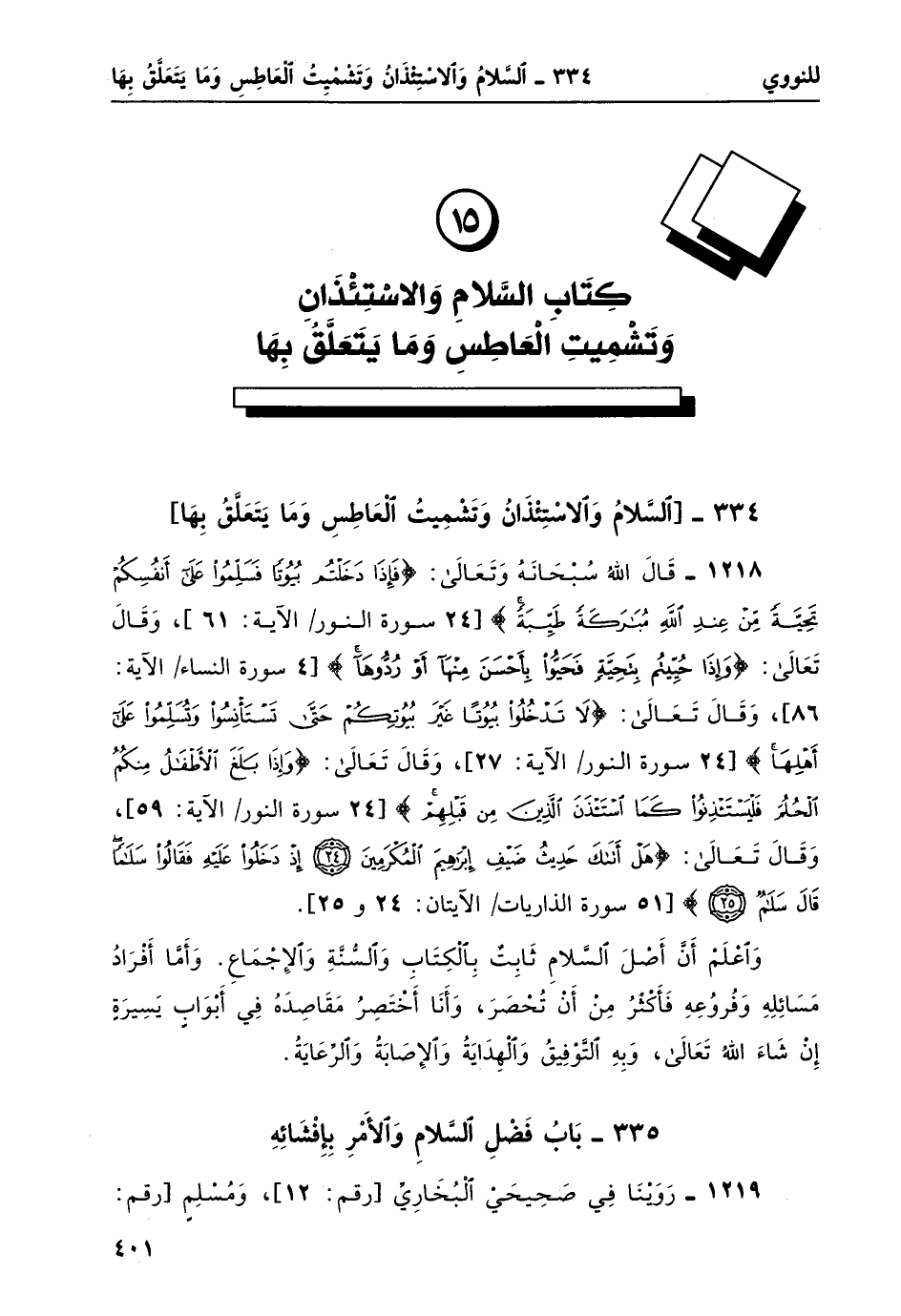 334-[السلام والاستئذان وتشميتُ العاطس وما يتعلق بها] :