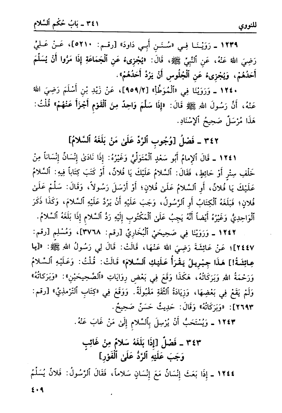 342- فصل [وجوب الرد على من بلغه السلام] :