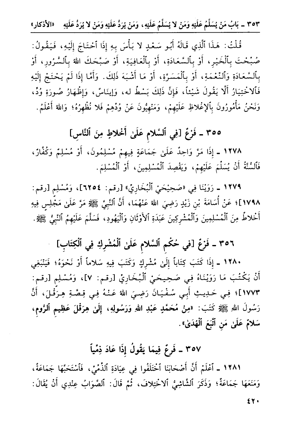 356- فرعُ [في حكم السلام على المشرك في الكتاب] :