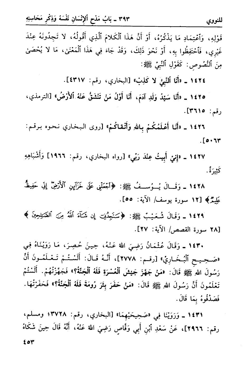 1426- "أنا أعلمُكم باللهِ وأتقاكم" [رواه البخاري نحوه برقم: 5063] .