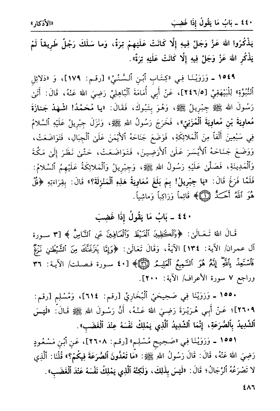 قال الله تعالى: {وَالْكَاظِمِينَ الْغَيْظَ وَالْعَافِينَ عَنِ النَّاسِ} [آل عمران: 134] الآيةُ، وقال تعالى: {وَإِمَّا يَنْزَغَنَّكَ مِنَ الشَّيْطَانِ نَزْغٌ فَاسْتَعِذْ بِاللَّهِ إِنَّهُ هُوَ السَّمِيعُ الْعَلِيمُ} [فصلت: 36، الأعراف: 200] .