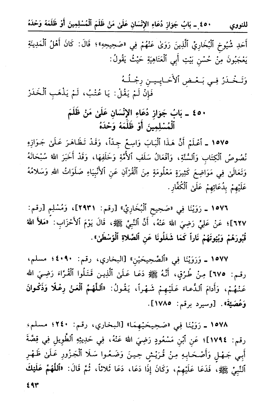 1575- اعلم أن هذا الباب واسعٌ جداً، وقد تظاهرَ على جوازه نصوصُ الكتاب والسنّة، وأفعالُ سلفِ الأمةِ وخلفها، وقد أخبرَ الله سبحانهُ وتعالى في مواضع كثيرةٍ معلُومةٍ من القرآنِ عن الأنبياء صلواتُ الله وسلامهُ عليهم بدعائهم على الكفّار.