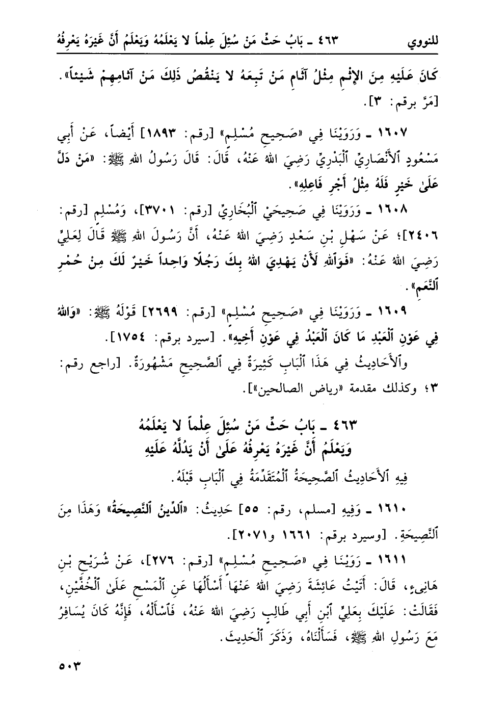 بابُ حثِّ مَنْ سُئلَ علماً لا يعلمهُ ويعلمُ أنَّ غيرَه يعرفُه على أن يدله عليه: