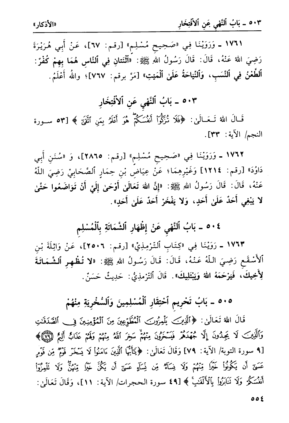 بابُ النّهي عن الافْتِخَار: