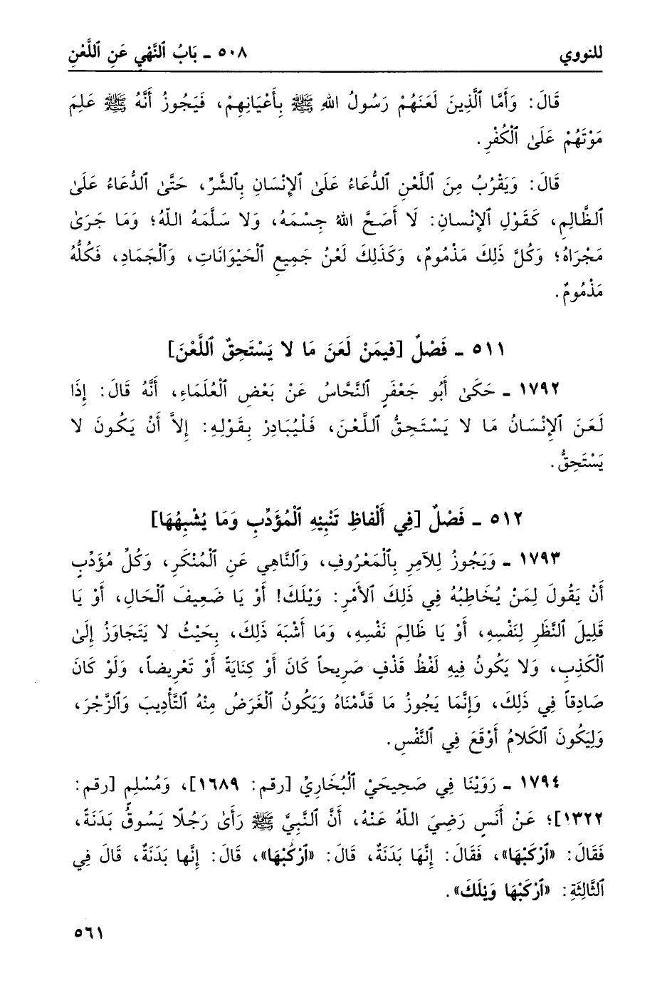 1792- حكى أبو جعفرٍ النحاسُ عن بعضِ العلماءِ، أنهُ قال: إذا لعن الإِنسانُ ما لا يستحقّ اللعن، فليبادرْ بقوله: إلاّ أن يكون لا يستحقّ.