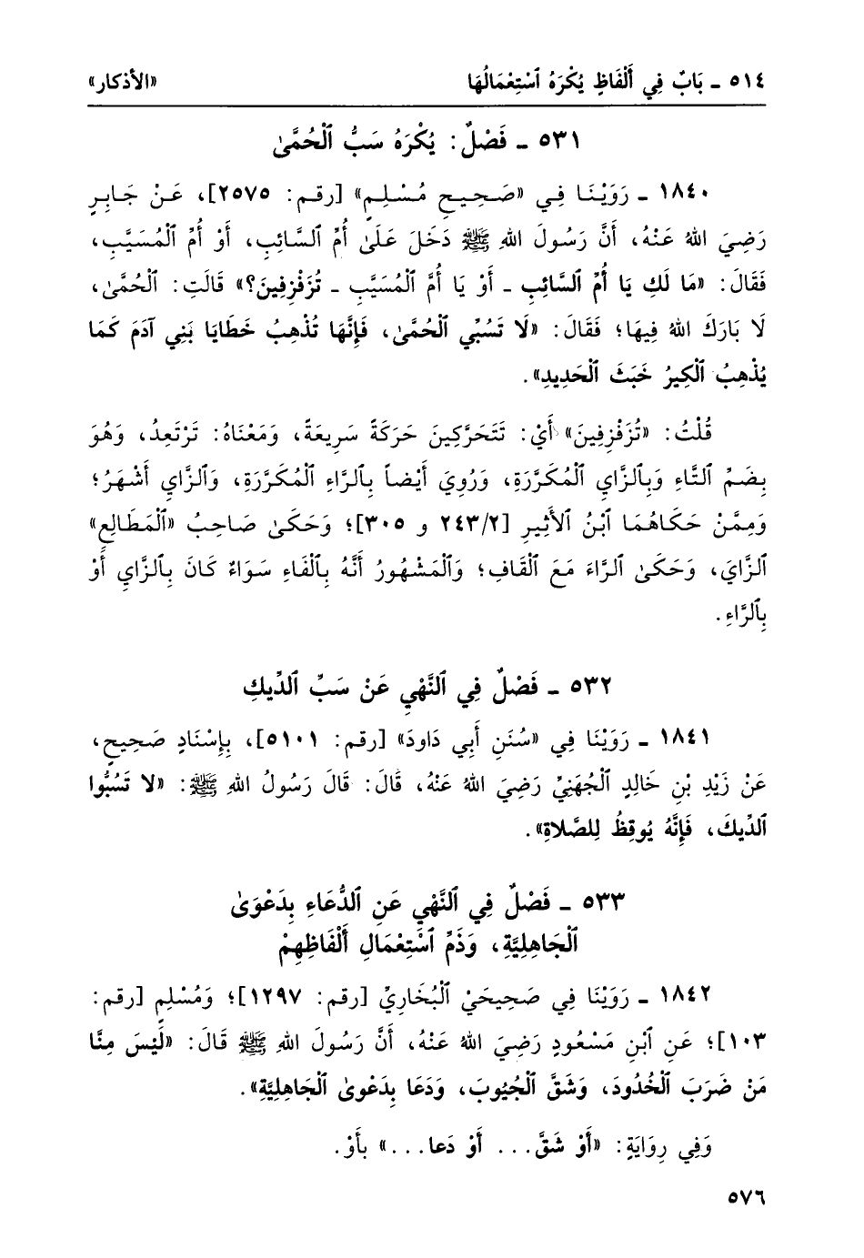 531- فصل: يُكره سبّ الحمى: