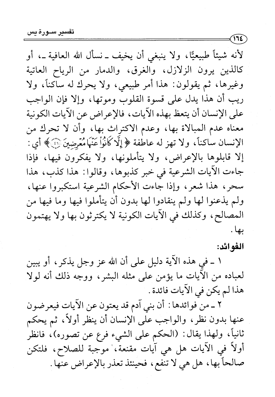 ٢ - من فوائدها: أن بني آدم قد يعتون عن الآيات فيعرضون عنها بدون نظر، والواجب على الإنسان أن ينظر أولًا، ثم يحكم ثانيًا، ولهذا يقال: (الحكم على الشيء فرع عن تصوره)، فانظر أولًا في الآيات هل هي آيات مقنعة، موجبة للصلاح، فلتكن صالحًا بها، هل هي لا تنفع، فحينئذ تعذر بالإعراض عنها.