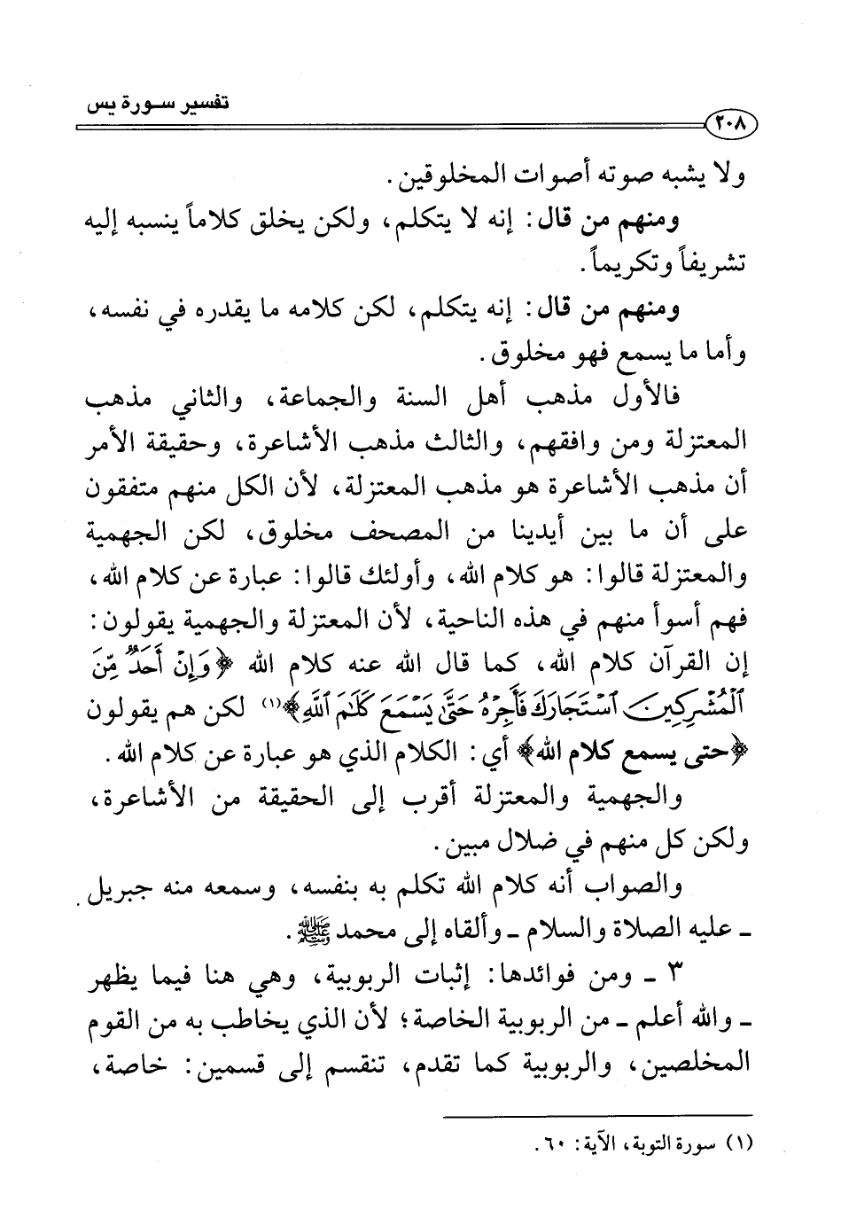 ومنهم من قال: إنه لا يتكلم، ولكن يخلق كلامًا ينسبه إليه تشريفًا وتكريمًا.