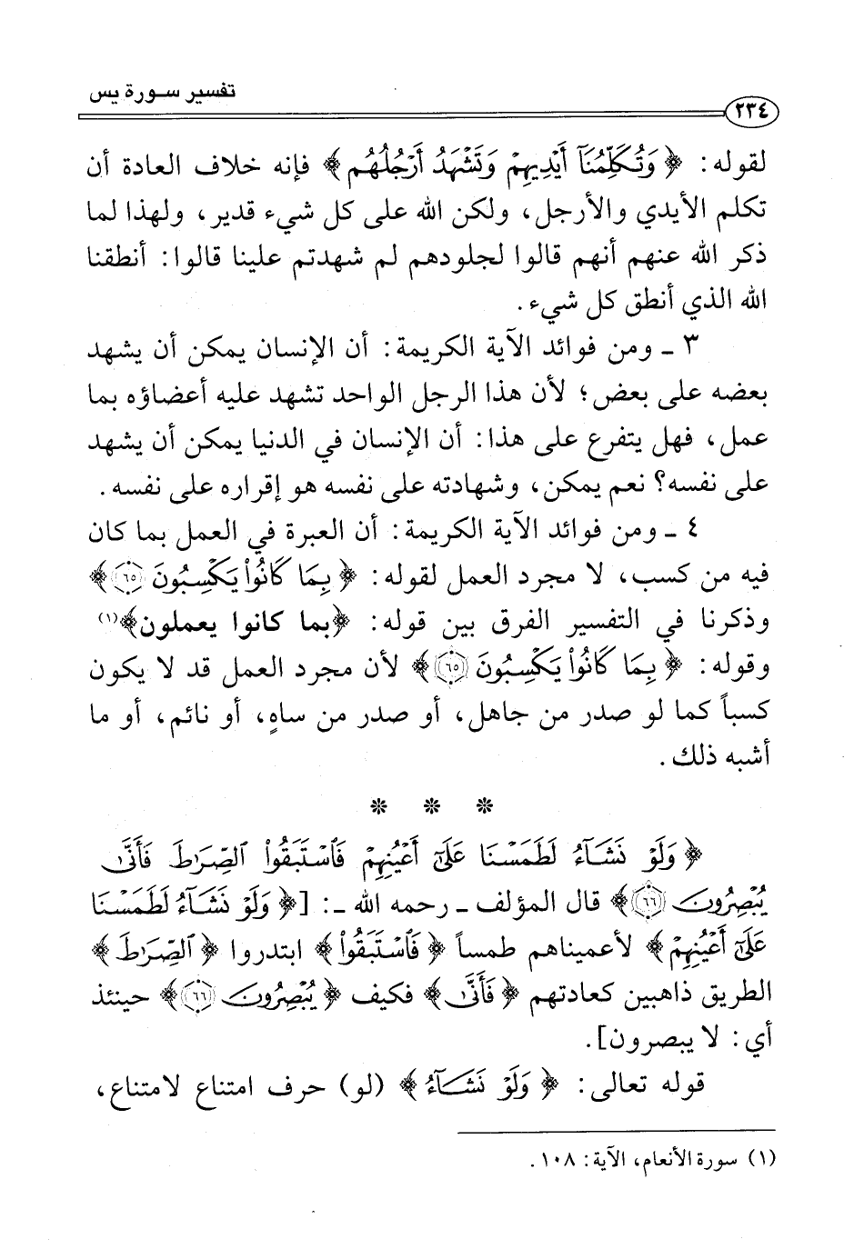{وَلَوْ نَشَاءُ لَطَمَسْنَا عَلَى أَعْيُنِهِمْ فَاسْتَبَقُوا الصِّرَاطَ فَأَنَّى يُبْصِرُونَ (٦٦)} قال المؤلف -رحمه الله-: {وَلَوْ نَشَاءُ لَطَمَسْنَا عَلَى أَعْيُنِهِمْ} لأعميناهم طمسًا {فَاسْتَبَقُوا} ابتدروا {الصِّرَاطَ} الطريق ذاهبين كعادتهم {فَأَنَّى} فكيف {يُبْصِرُونَ (٦٦)} حينئذ أي: لا يبصرون].