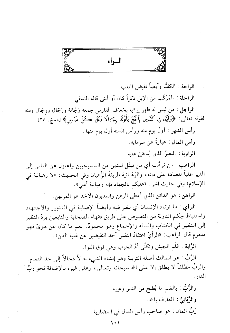 الرَّبُّ: هو المالك أصله التربية وهو إنشاء الشيء حالاً فحالاً إلى حد التمام. والربُّ مطلقاً لا يطلق إلى على الله سبحانه وتعالى، وعلى غيره بالإضافة نحو ربِّ الدار.