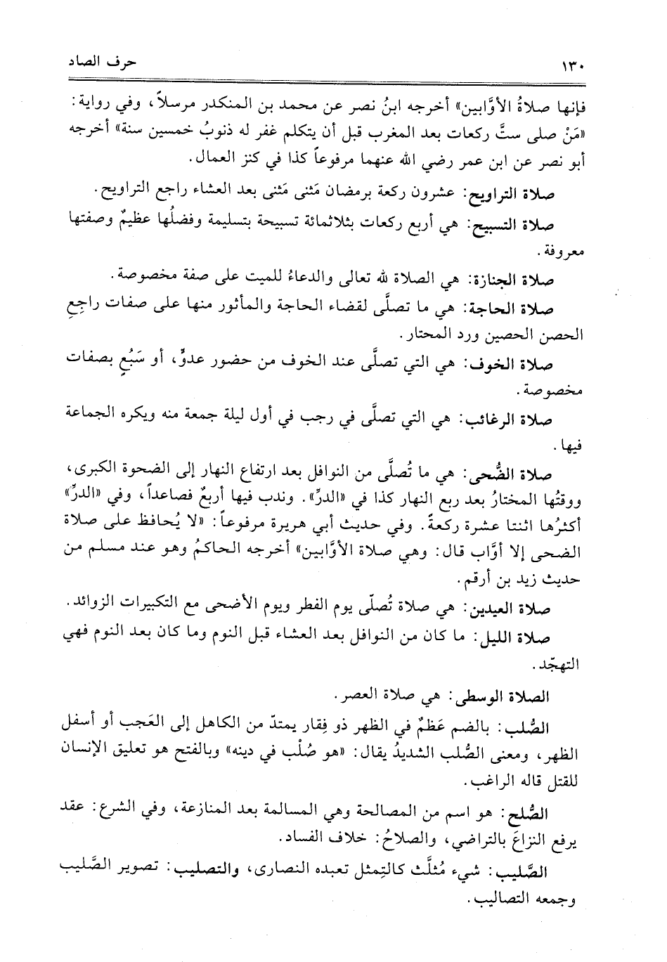 صلاة الضُّحى: هي ما تُصلَّى من النوافل بعد ارتفاع النهار إلى الضحوة الكبرى، ووقتُها المختارُ بعد ربع النهار كذا في "الدرِّ". وندب فيها أربعٌ فصاعداً، وفي "الردِّ" أكثرُها اثنتا عشرة ركعةً. وفي حديث أبي هريرة مرفوعاً: "لا يُحافظ على صلاة الضحى إلا أوَّاب قال: وهي صلاة الأوَّابين" أخرجه الحاكمُ وهو عند مسلم من حديث زيد بن أرقم.
