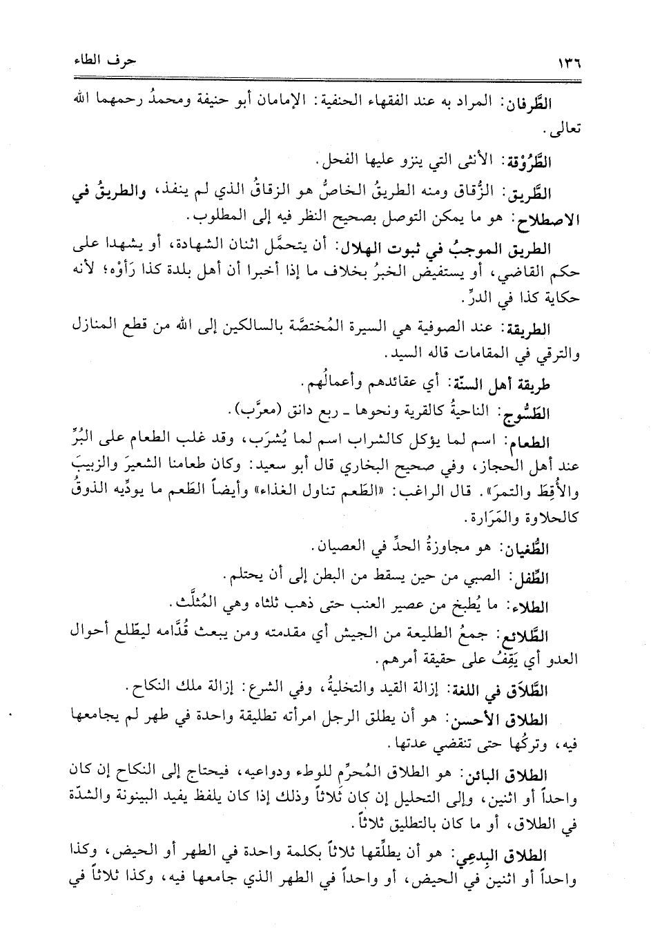 الطَّريق: الزُّقاق ومنه الطريقُ الخاصُّ هو الزقاقُ الذي لم ينفذ، والطريقُ في الاصطلاح: هو ما يمكني التوصل بصحيح النظر فيه إلى المطلوب.
