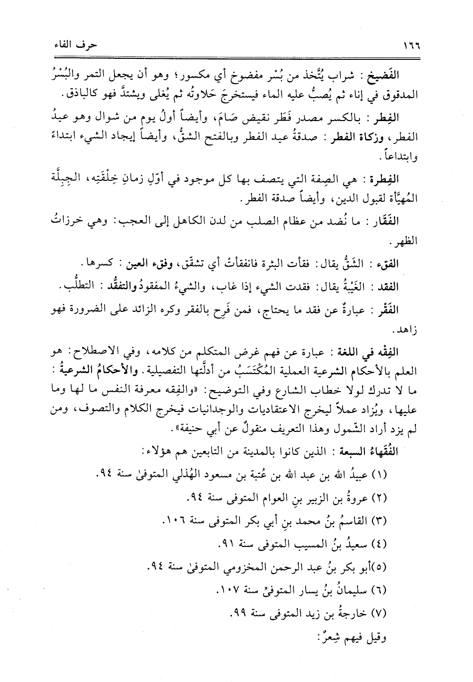 الفِقْه في اللغة: عبارة عن فهم غرض المتكلم من كلامه، وفي الاصطلاح: هو العلم بالأحكام الشرعية العملية المُكْتَسَبُ من أدلَّلتها التفصيلية. والأحكامُ الشرعيةُ: ما لا تدرك لولا خطاب الشارع وفي التوضيح: "والفِقه معرفة النفس ما لها وما عليها، ويُزاد عملاً ليخرج الاعتقاديات والوجدانيات فيخرج الكلام والتصوف، ومن لم يزد أراد الشّمول وهذا التعريف منقولٌ عن أبي حنيفة".