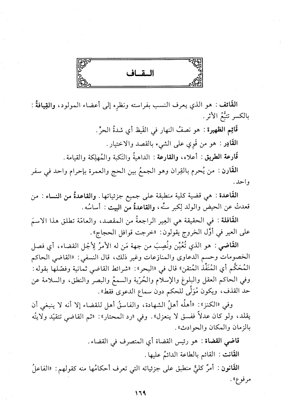 القَانون: أمرٌ كليٌّ منطبق على جزئياته التي تعرف أحكامُها منه كقولهم: "الفاعلُ مرفوع".